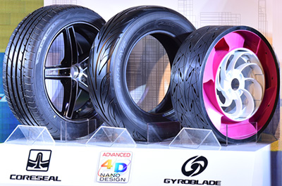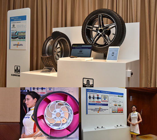 住友橡膠積極實踐“無備胎化”的節(jié)能理念,不斷推進技術(shù)革新,研發(fā)出了非充氣輪胎和密封膠輪胎,實現(xiàn)了車輛的輕量化和空間最大利用化效果。非充氣輪胎技術(shù)“GYROBLADE”將金屬輪轂,特殊樹脂輪輻和橡膠胎面巧妙結(jié)合,實現(xiàn)了不需要填充空氣也能滿足行駛性能需求的技術(shù)。既避免了普通輪胎保養(yǎng)維護的負擔,也為消費者提供多種色彩選擇,大大提升駕駛時尚感。密封膠輪胎技術(shù)“CORESEAL”在輪胎內(nèi)壁涂抹特殊材質(zhì)密封膠,當輪胎遭遇異物刺入也能確保不漏氣,大大提升了輪胎的安全性能。