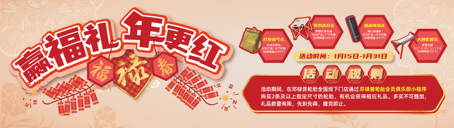 迎福禮 年更紅!購2條及以上指定尺寸輪胎,有機(jī)會(huì)獲得相應(yīng)禮品。