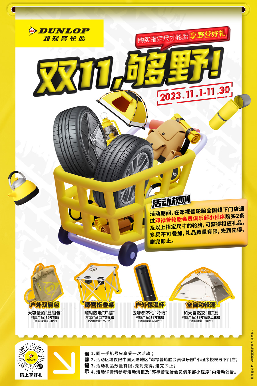 雙11,夠野!購買指定尺寸輪胎,享野營好禮!