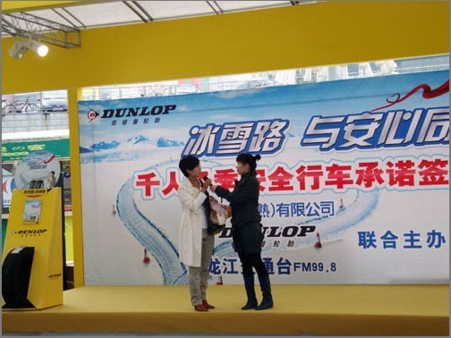 ??????? 2009年10月,住友橡膠常熟有限公司暨鄧祿普輪胎聯(lián)合黑龍江交通臺(tái)、吉林交通臺(tái)在黑龍江哈爾濱、佳木斯、牡丹江、大慶、加格達(dá)奇、吉林長(zhǎng)春、通化以及內(nèi)蒙古滿(mǎn)洲里舉辦“冰雪路 與安心同行——千人冬季安全行車(chē)承諾簽名”活動(dòng),旨在倡導(dǎo)和宣傳冬季行駛安全,推廣冬季輪胎知識(shí),保障冬季冰雪道路行駛安全。