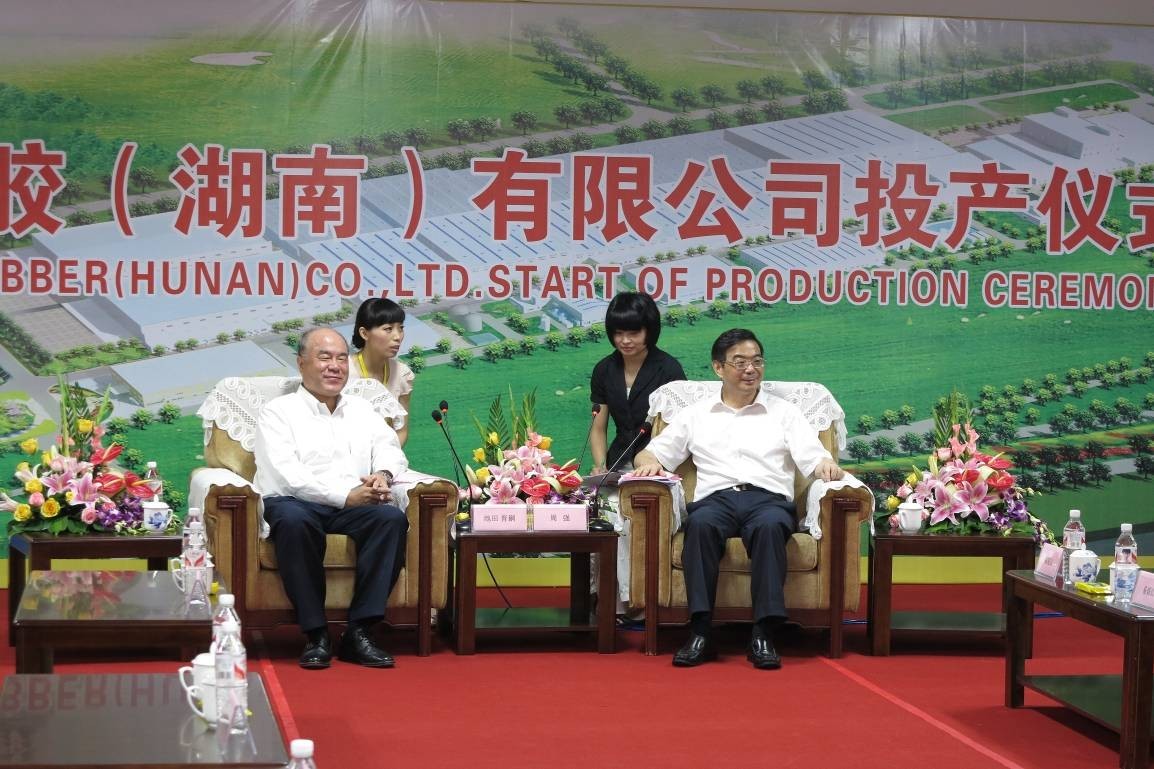 此次投產(chǎn)儀式上,湖南省委書(shū)記、省人大常委會(huì)主任周強(qiáng)會(huì)見(jiàn)了日本住友橡膠工業(yè)株式會(huì)社社長(zhǎng)池田育嗣一行,并出席投產(chǎn)儀式宣布產(chǎn)品投產(chǎn);湖南省委常委、長(zhǎng)沙市委書(shū)記陳潤(rùn)兒在儀式上致辭,省委常委、省委秘書(shū)長(zhǎng)易煉紅也蒞臨現(xiàn)場(chǎng)。池田育嗣代表住友橡膠感謝湖南省各級(jí)各部門(mén)的大力支持,并且表示住友橡膠來(lái)湘期間見(jiàn)證了湖南省、長(zhǎng)沙市日新月異的發(fā)展變化,十分榮幸能夠在這里設(shè)廠。隨著中國(guó)汽車(chē)產(chǎn)業(yè)的發(fā)展和企業(yè)生產(chǎn)能力的提高,雙方未來(lái)合作的前景美好、潛力巨大。