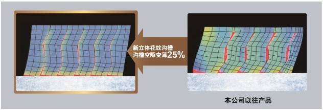 空前強大的WINTER MAXX針對冰面行駛帶來了“銳鋒技術(shù)”,新立體花紋溝槽設(shè)計,讓花紋片溝槽間隙變薄25%。這種設(shè)計使輪胎在制動時內(nèi)部結(jié)構(gòu)不易傾倒,如同尖銳的冰鎬,穩(wěn)穩(wěn)抓住冰面,增強了支撐力。采用的立體片狀花紋結(jié)構(gòu),與傳統(tǒng)冬胎產(chǎn)品相比增加了22%的片狀花紋,為輪胎增加了接地面積。由此兩方面,該技術(shù)大幅提高了輪胎的冰上制動力和冰雪路面抓地力。