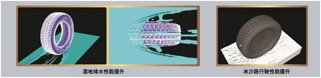 WINTER MAXX針對雪地行駛,在設(shè)計上也做出了很大改進。塊狀結(jié)構(gòu)間的橫向溝槽以及縱向溝槽的容積大幅提升,使得輪胎在雪地上行駛時,通過輪胎的滾動,能夠有效的擠壓并抓住積雪,并且不斷壓雪、排雪,幫助順暢行駛。