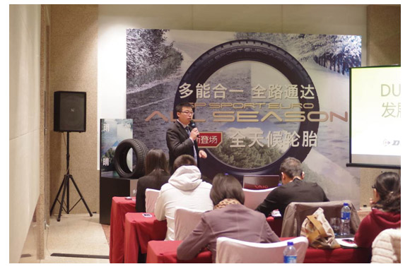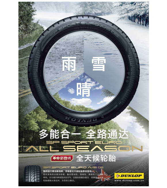 為了解決駕車族們季節(jié)性換胎的煩惱,尋找到一款能夠兼顧“晴、雨、雪”天氣的全能型輪胎,一直致力于輪胎開發(fā)的世界著名的輪胎專家——鄧祿普輪胎,經(jīng)過反復(fù)嘗試和研究,終于克服難關(guān)獲得成功。2013年10月30日,鄧祿普在北京舉辦新品發(fā)布會,正式宣布將于今年11月份推出了一款可以從容應(yīng)對四季各種天氣狀況的“SP SPORT EURO A/S 08”全天候輪胎。