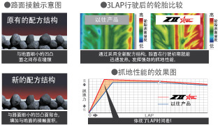 運用4D NANO DESIGN技術(shù),提升膠料整體的剛性,成功實現(xiàn)僅在橡膠接觸地面時才發(fā)揮其柔韌性。通過增加與路面的貼合度,提升低溫時的發(fā)熱性,確保在行駛初期就能發(fā)揮強勁的又抓地性能。全新配方結(jié)構(gòu)增加了微粒子炭黑,優(yōu)化了聚合物比率,提升輪胎的耐熱損耗性能。通過輪胎抓地性能的提升與抑制高溫時的性能變化,確保車輛在連續(xù)沖刺階段也能跑出穩(wěn)定的LAP時間,出色的實現(xiàn)環(huán)行賽道LAP時間縮短1.0%!