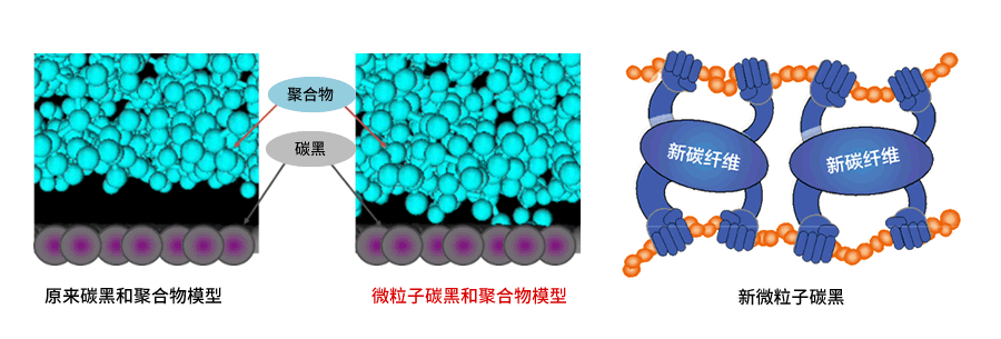 加入微粒子碳黑,減少橡膠發(fā)熱量,從而大幅提升輪胎抓地力、耐磨性能及耐啃傷性能;