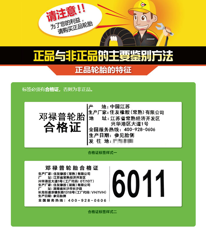 鑒別鄧祿普輪胎是否為正品,請(qǐng)注意參考以下三個(gè)正品輪胎特征: