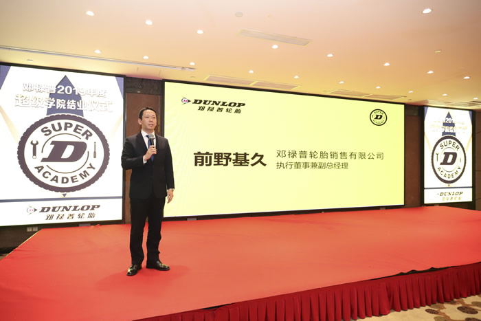鄧祿普輪胎的執(zhí)行董事兼副總經(jīng)理前野基久先生在本次結(jié)業(yè)典禮致辭中,回顧了中國輪胎市場的現(xiàn)狀,并強調(diào)了高品質(zhì)服務(wù)對于門店銷售提升的重大意義以及鄧祿普輪胎在這方面所做出的努力及規(guī)劃,同時也對超級學(xué)院的成果表示了認(rèn)可,并對超級學(xué)院未來的發(fā)展表達(dá)了最美好的祝愿。