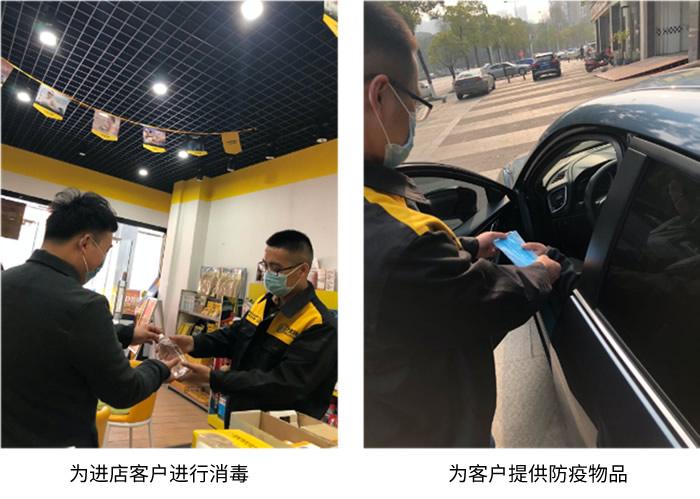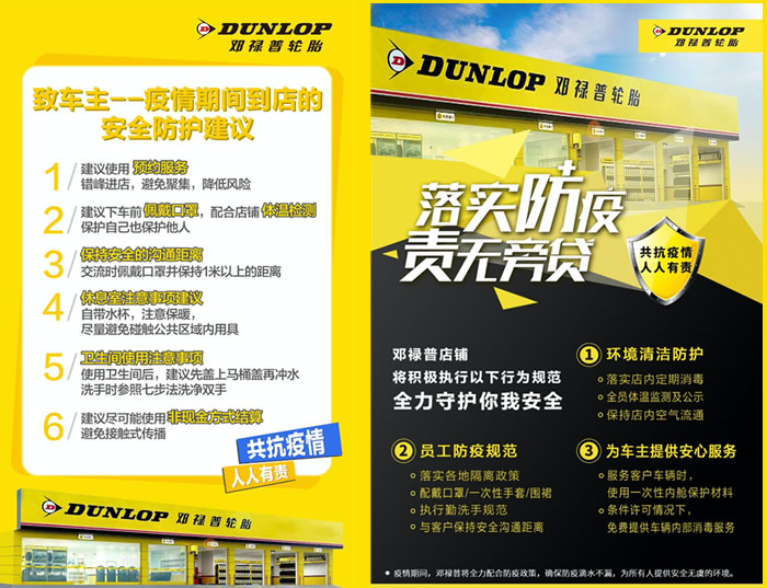 鄧祿普輪胎門店同樣積極響應(yīng),嚴(yán)格落實(shí)門店防疫措施,防疫工作均達(dá)到當(dāng)?shù)卣膹?fù)工標(biāo)準(zhǔn)。門店除體溫檢測(cè)、工作區(qū)域消毒等基本防疫工作外,有條件的門店,還開(kāi)展服務(wù)升級(jí),為到店客戶提供車內(nèi)消毒服務(wù)和防疫物資,為不便到店的顧客提供上門服務(wù)及上門取送車等服務(wù)。