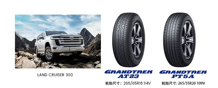 住友橡膠工業(yè)株式會(huì)社(以下稱住友橡膠集團(tuán))將為豐田汽車公司新發(fā)布的蘭德酷路澤300(以下稱LC300)提供GRANDTREK AT23和GRANDTREK PT5A兩款產(chǎn)品作為原廠配套輪胎。