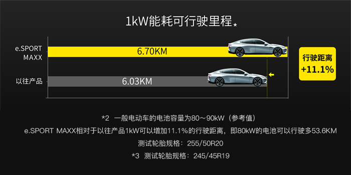 在續(xù)航環(huán)保方面,通過(guò)革新配方及技術(shù)實(shí)現(xiàn)輪胎輕量化,根據(jù)實(shí)驗(yàn)數(shù)據(jù)得知,較以往產(chǎn)品相比,e. SPORT MAXX不僅能夠延長(zhǎng)11.1%/KW能耗可行駛里程*2,且輪胎的使用壽命也提升了25%*3,大幅增加續(xù)航能力的同時(shí)減小環(huán)境負(fù)荷,以格物之心追求更加長(zhǎng)久的可持續(xù)發(fā)展。同時(shí)e. SPORT MAXX也是目前住友橡膠集團(tuán)史上實(shí)現(xiàn)最低能耗的輪胎產(chǎn)品。為達(dá)成更高的環(huán)保目標(biāo),中國(guó)市場(chǎng)所發(fā)售的e. SPORT MAXX完全使用綠色電力生產(chǎn),生來(lái)自帶的環(huán)保屬性將在新能源汽車(chē)后市場(chǎng)卷起一陣綠色風(fēng)暴。
