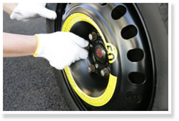 ● 在裝有車輪蓋的輪胎上,輪胎和車輪蓋之間,插有扁平狀的東西,請取下。