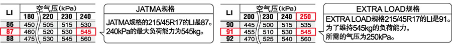 EXTRA LOAD規(guī)格和ETRTO(歐洲輪胎輪輞標準)下的規(guī)格相比較,設定了較高的氣壓和負荷能力。同一輪胎情況下,EXTRA LOAD規(guī)格和ETRTO標準規(guī)格或者其他輪胎規(guī)格相比,負荷指數(shù)會有所增加。另外,即使是同一尺寸輪胎,氣壓承受的負荷能力和其他規(guī)格的輪胎設定也不相同,相同的氣壓條件下,輪胎的負荷能力未必能都全部發(fā)揮(下降)的情況也時有存在。作為進口車使用安裝產(chǎn)品,本公司正在不斷擴大EXTRA LOAD規(guī)格的輪胎尺寸。EXTRA LOAD規(guī)格也可以稱作加強型規(guī)格。