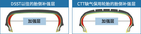 所謂缺氣保用輪胎是指在汽車行駛中出現(xiàn)穿刺,輪胎氣壓降到零時(shí),仍然能夠以設(shè)定的速度行駛一定跑離的輪胎,它因?yàn)橥瑫r(shí)實(shí)現(xiàn)行駛時(shí)安全性能的提高以及取消備用輪胎帶來(lái)的資源和燃費(fèi)的節(jié)約這一環(huán)保性能而廣受矚目。目前已被許多車種使用,與汽車的進(jìn)步并肩而行的DUNLOP,從很早開始就著手對(duì)缺氣保用輪胎進(jìn)行研究,并成功實(shí)現(xiàn)實(shí)用化,技術(shù)實(shí)力得到公以。