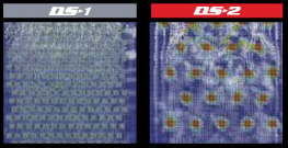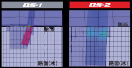輪胎駛過雪地的印跡中各部分雪的密度分布以不同顏色區(qū)分(紅色部分密度高)。如圖所示,DS-2對(duì)于駛過處中央部位產(chǎn)生的力更強(qiáng)。
